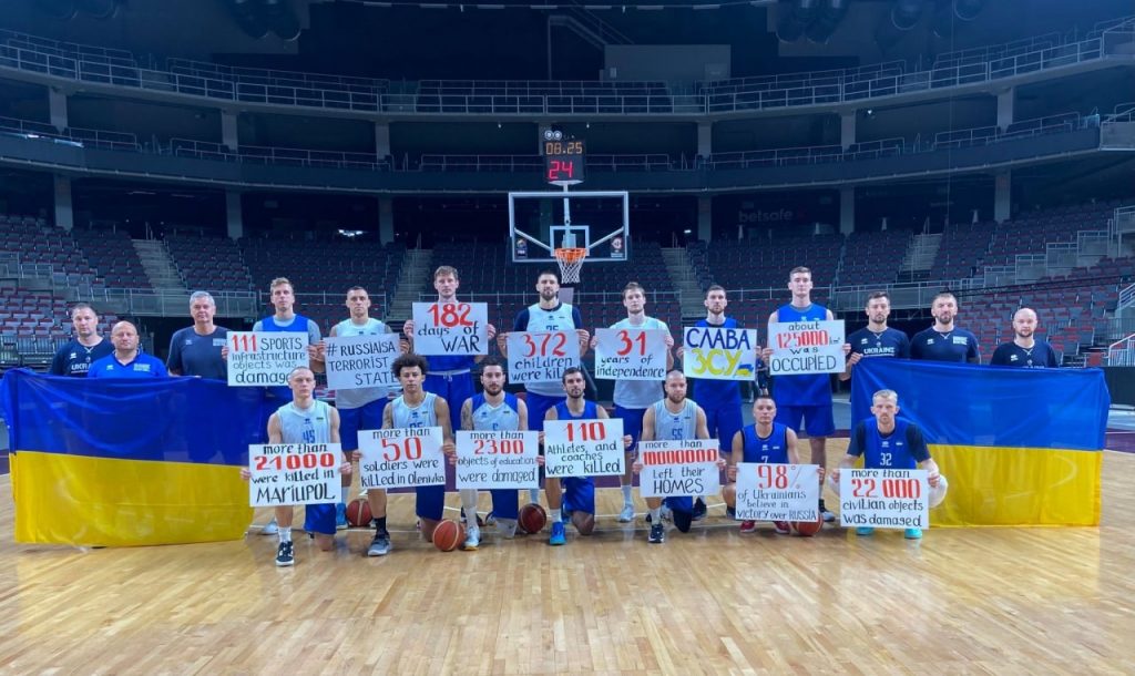 «Це була ідея Іллі Сидорова. Він запропонував зробити футболки з цими написами, щоб ми вийшли в них на розминку перед матчем. Але у ФІБА повели себе не найкращим чином та не дозволили нам провести цю акцію. На офіційну частину перед матчем виходити в подібних футболках було заборонено. Хтось ще казав, що ми давали запит вийти з національними прапорами на гімн перед початком гри, і чекали відповіді близько двох тижнів. ФІБА хоче бути до всіх лояльними. Не називають речі своїми іменами. Жодного разу не назвали війну в Україні війною. Боягузи. Через те, що ФІБА заборонила футболки, ми за день до гри зробили плакати. Сфотографувалися, зробили відео. Хотіли до Дня Незалежності нагадати людям про злочини Росії. Плюс – на матчі також були українські дітлахи, які прийшли нас підтримати – у них у Ризі був тренувальний табір. Під час гри вони сиділи з цими плакатами», – розповів український баскетболіст.