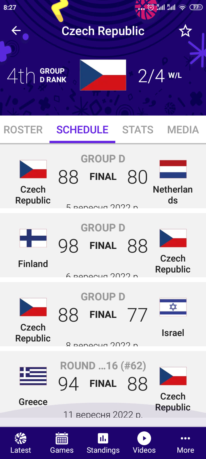 ЄвроБаскет 2022. 11 вересня. Результати матчів