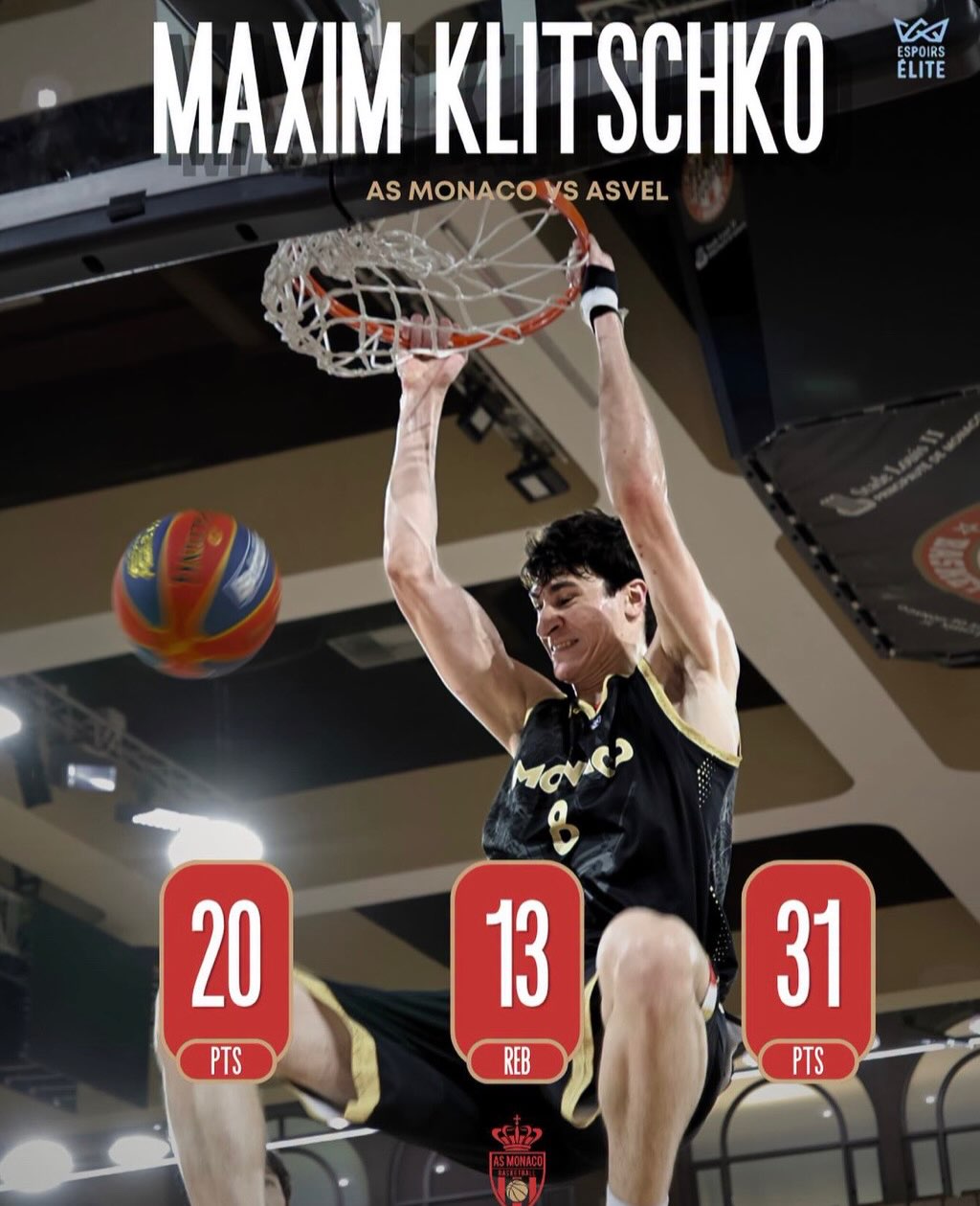 Максим Кличко зіграв 18 хвилин за основну команду Монако в чемпіонаті Франції проти іншої французької команди Євроліги АСВЕЛа.