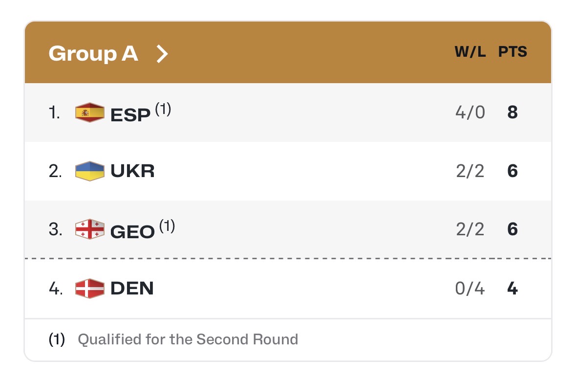Для того щоб приєднатися до Іспанії і Грузії у другому раунді, Україні потрібно здобути перемогу мінімум в одному з липневих матчів (граємо проти Грузії і Данії).